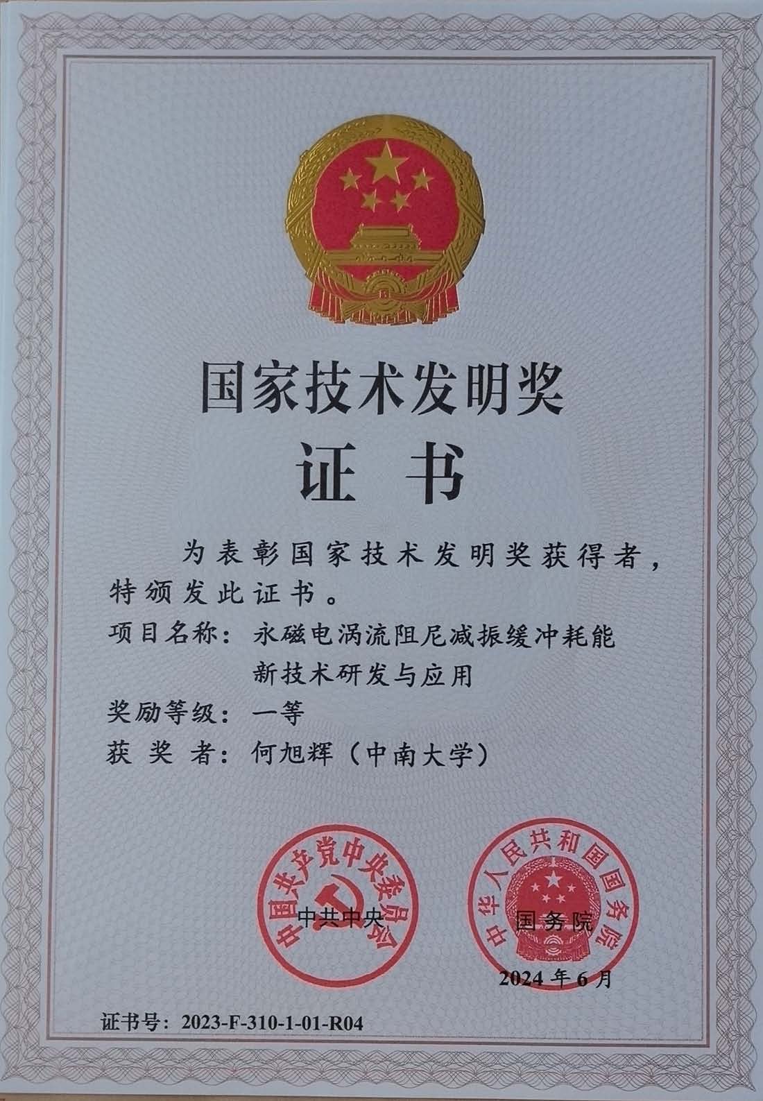 伟德官网何旭辉教授参与完成的“永磁电涡流阻尼减振缓冲耗能新技术研发与应用”项目荣获2023年度国家技术发明奖一等奖。