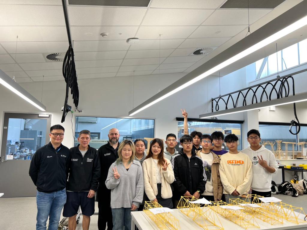 交流团由伟德国际1946源于英国副教授蒋建国、谢济仁,辅导员潘文彬及10名2023级土木国际专业本科生组成。8月19日,在蒙纳士大学墨尔本克莱顿校区举行了欢迎仪式及午餐交流会,蒙纳士工程学院为交流团介绍了蒙纳士大学以及本次访问交流活动的具体安排,工程学院博士生助教以及伟德官网土木国际专业在澳学长也在交流会上分享了留学经验。随后,交流团参观了蒙纳士大学克莱顿校区以及土木工程系实验室。