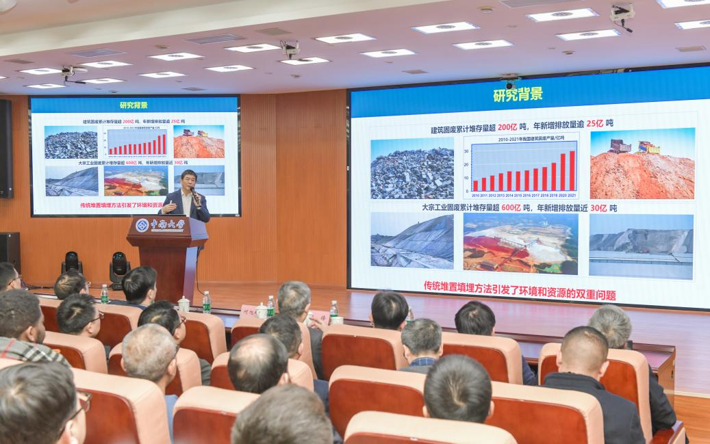 邢院士重点介绍了利用纳米SiO2技术提升废石基料性能的研究进展。通过该技术,废石可转化为高性能再生混凝土石料,其力学强度与耐久性达到工程应用标准。此外,团队创新性地将再生混凝土石料与玻璃砂复合,开发出兼具基层支撑与光催化功能的NOx净化材料,为大气污染治理提供了“以废治废”的新路径。