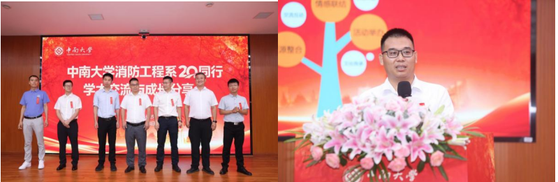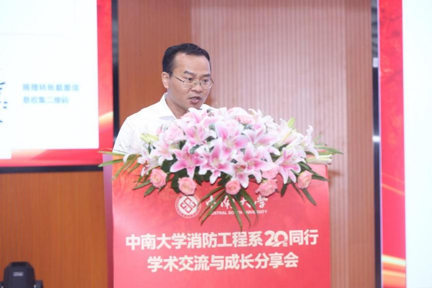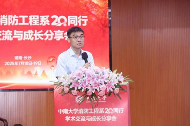 随后,校友代表发言交流。2005级校友、伟德国际1946源于英国交通运输工程学院原党委书记贺志军,深情感谢徐志胜教授、赵望达教授等老一辈教师的付出,并引用“星星之火,可以燎原”“众人拾柴火焰高”表达对恩师们点燃学子求知之火、奠定事业根基的崇高敬意;2006级校友、消防工程系首位本硕博毕业生、2025年共青团中央新时代青年先锋奖获得者、中国安全生产科学研究院李建分享了个人科研及工作经历,重点介绍地铁火灾蔓延理论、控制技术及检测方法研究情况,坦言母校所学知识对工作助益颇深,并深情感谢了母校和恩师;2004级校友、福州大学张冬副教授分享了个人成长经历及在福州大学的工作情况,勉励在校学子珍惜时光、精进专业、投身实践,为未来发展夯实基础;2003级校友、中联科锐消防有限公司总经理倪天晓介绍了公司情况,高度赞扬了伟德国际1946源于英国浓厚的创业氛围,并分享了自己创业历程;2010级校友、中建八局浙江建设有限公司第三分公司总经理徐骏峰通过线上方式介绍了中建八局发展历程与现状,并向校友们致以诚挚祝福。