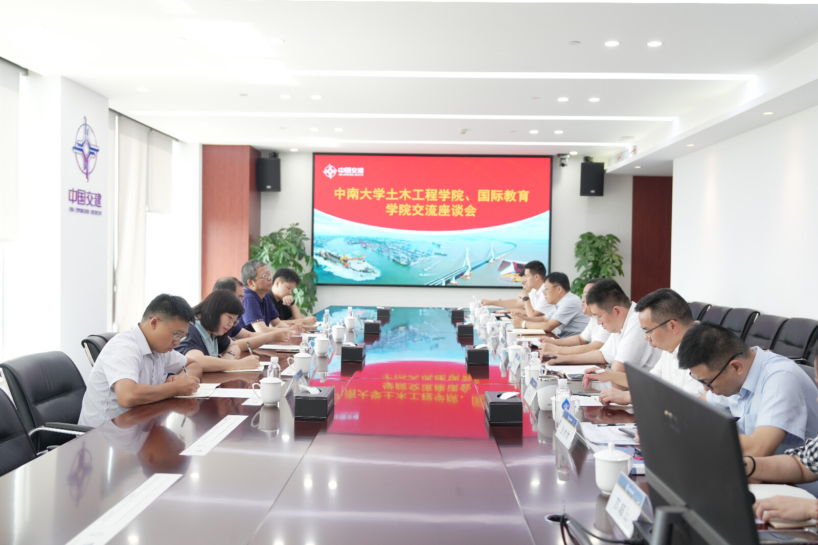 会前,学校一行参观了中交中南工程局企业展厅,实地了解了企业在智慧建造、绿色施工等领域的最新成果。