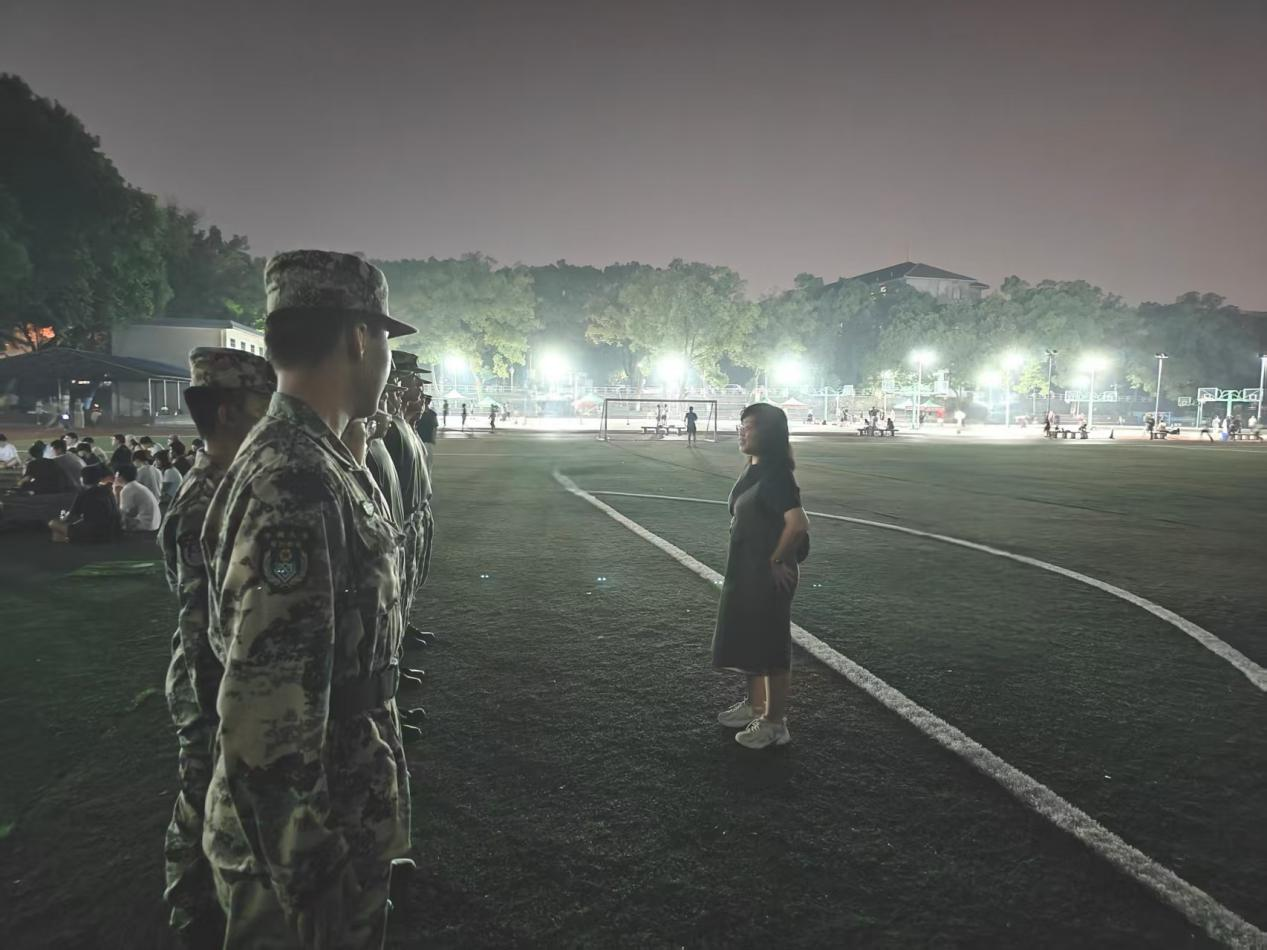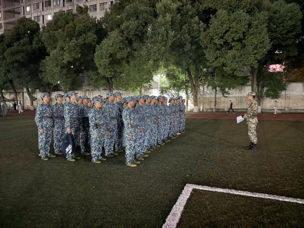 最后,各排排长组织了队伍内的交流破冰环节,每位同学都进行自我介绍,场面一片欢声笑语。学办主任杨涛表示:“希望同学们以饱满的热情与昂扬的斗志投入到军训中,秉持纪律、服从指挥,尽己所能、全力以赴地完成每一项训练科目,充分展现土木学子“不怕吃苦、不惧挑战”的精神风貌,在团结协作中收获珍贵的友谊。”