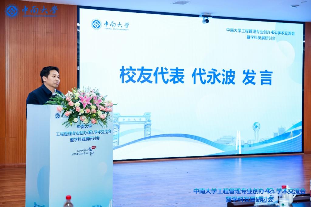 工程管理专业96级校友、中国铁路南宁局集团有限公司副总经理代永波代表校友发言。他表达了对母专业及师长们的深深谢意,感谢母校的培育之恩,感谢恩师的谆谆教诲。他勉励在校学子珍惜时光、精进专业、投身实践,为未来发展夯实基础。