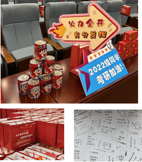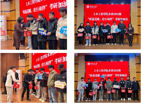 学院领导将礼包依次发放到到场的考研同学手中,让这份暖意与力量伴随他们迎接挑战。