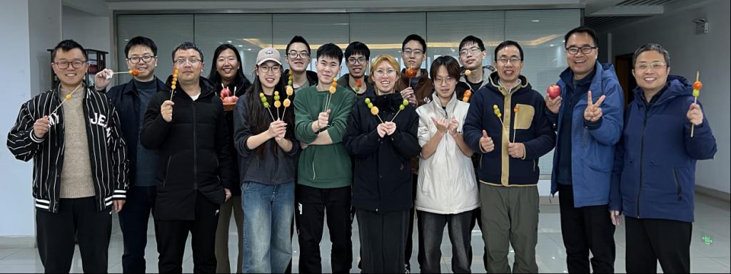 糖葫芦制作过程中,大家看着金黄色的糖浆在火候的催化下逐渐浓稠、翻滚,一串串香甜的糖葫芦应运而生。室外寒风凛冽,室内围炉话新春,糖果香四溢飘香,大家开心品鉴自己制作的糖葫芦,相互送着马年祝福,平时严肃的学术探讨化作了此刻家常唠嗑和品尝甜蜜。