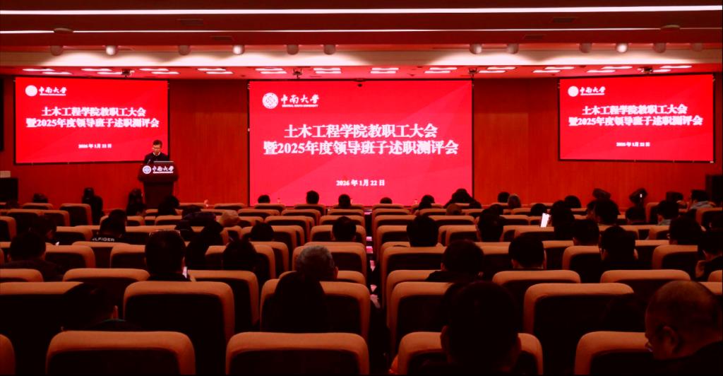 学院党委书记李磊代表学院领导班子作了题为《扛旗争先 乘势而上——奋力开创“十五五”高质量发展新局面》的述职报告,全面回顾学院2025年主要工作及成效,分析存在的问题与不足,对2026年重点工作进行部署。学院领导班子成员个人述职采用书面形式进行。