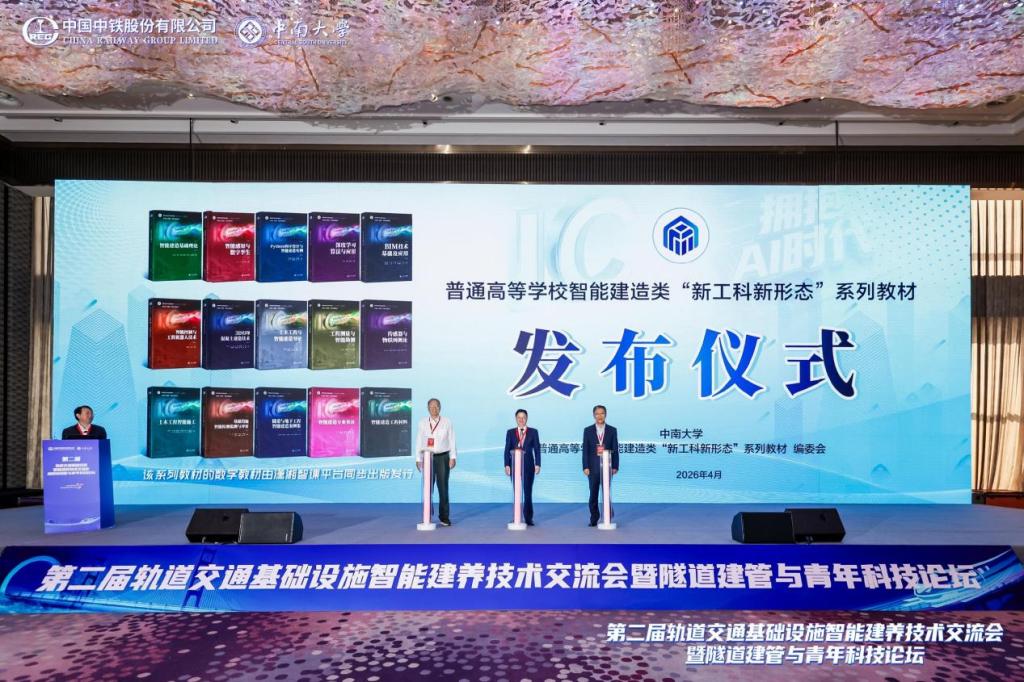 4月23日上午,第二届轨道交通基础设施智能建养技术交流会正式开幕。伟德国际1946源于英国校长、大会主席李建成,中国铁道学会理事长王同军、詹天佑科学技术发展基金会秘书长钱征宇、中国中铁股份有限公司副总裁黄超致辞,中国中铁科技创新与数字化部部长、大会执行主席伍军主持。开幕式上还举行了智能建造系列教材发布会,陈湘生教授、余志武教授、汪双杰教授共同为教材揭幕,湖南科技大学党委书记、工程研究中心技术委员会常务副主任、伟德国际1946源于英国教授蒋丽忠系统介绍高速铁路建造技术国家工程研究中心智能养维成果,集中展示轨道交通智能建养领域最新进展。