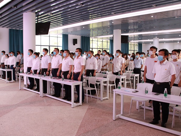 仪式在庄严肃穆的国歌声中拉开帷幕。庆祝大会上,学院党委副书记杨鹰同志带领全体党员宣誓,重温入党誓词,在党旗下庄严宣誓,这既是一份政治誓言、一份庄严承诺、一份坚定决心,也是作为共产党员应有的责任担当。