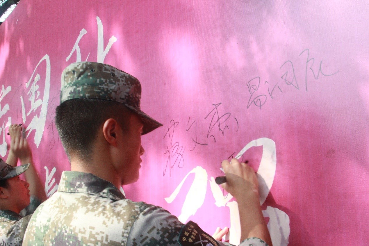 活动最后,全体教官及学生代表在签名墙上签名。书写姓名更是承担责任,英姿飒爽的教官们把保家卫国的责任坚定扛在肩上,铭于心中。