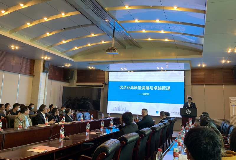随后,邓尤东教授做了题为“论企业高质量发展与管理”的学术报告。他从企业战略成果、企业运营实战、企业管理精要三大方面结合丰富的管理案例深入浅出地为与会师生作了相关报告,深刻阐述了建筑企业推动智能建造与建筑工业化协同发展,走新型建筑工业化道路,是企业高质量发展的重要方向。他从管理学的视角出发,从卓越领导者的素养和卓越领导者的商务礼仪两方面进一步分享了如何成为卓越管理者。