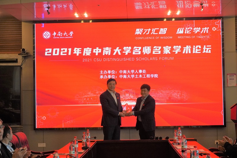 张升为邓尤东教授颁发了名师名家学术论坛报告荣誉奖杯。