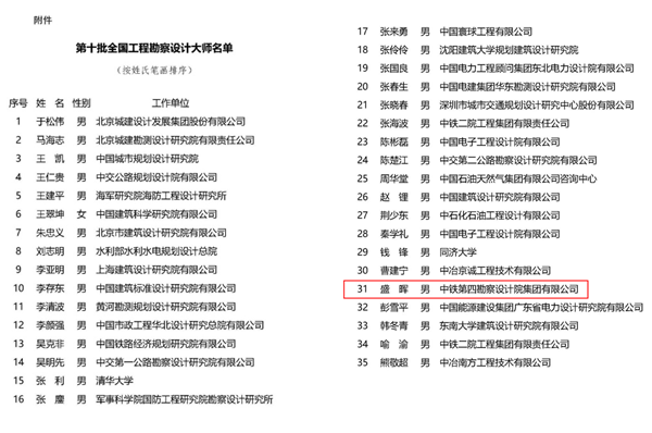 81级校友盛晖获评“第十批全国工程勘察设计大师”