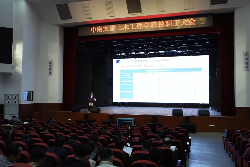 院长何旭辉作了《对标“一流学科”全力以赴谋发展》为主题的学院工作报告。他从党建工作、人才培养、师资队伍、科学研究、平台建设等方面全面汇报了学院2021年度工作总结。在分析学科建设面临的机遇与挑战的基础上,何旭辉指出,当前学科建设任重道远,全院上下要戮力同心,从师资与团队建设、科研与平台建设、教学与人才培养、校友与社会服务、教职工岗位聘任工作等方面紧密围绕学科建设持续落实“四个转型”发展战略,奋斗新征程,建功新时代,以饱满的精神和优异的成绩喜迎党的二十大胜利召开。