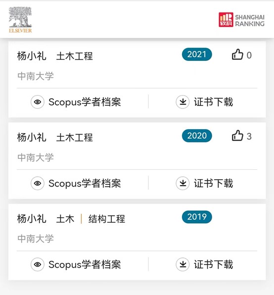 李显方、杨小礼2名教授入选中国高被引学者榜单充分体现了伟德官网在土木工程、力学专业领域研究的重要性和前沿性,极大提升了伟德官网科研团队在国内外的影响力,对学院的一流学科建设起到了重要的推动作用。
