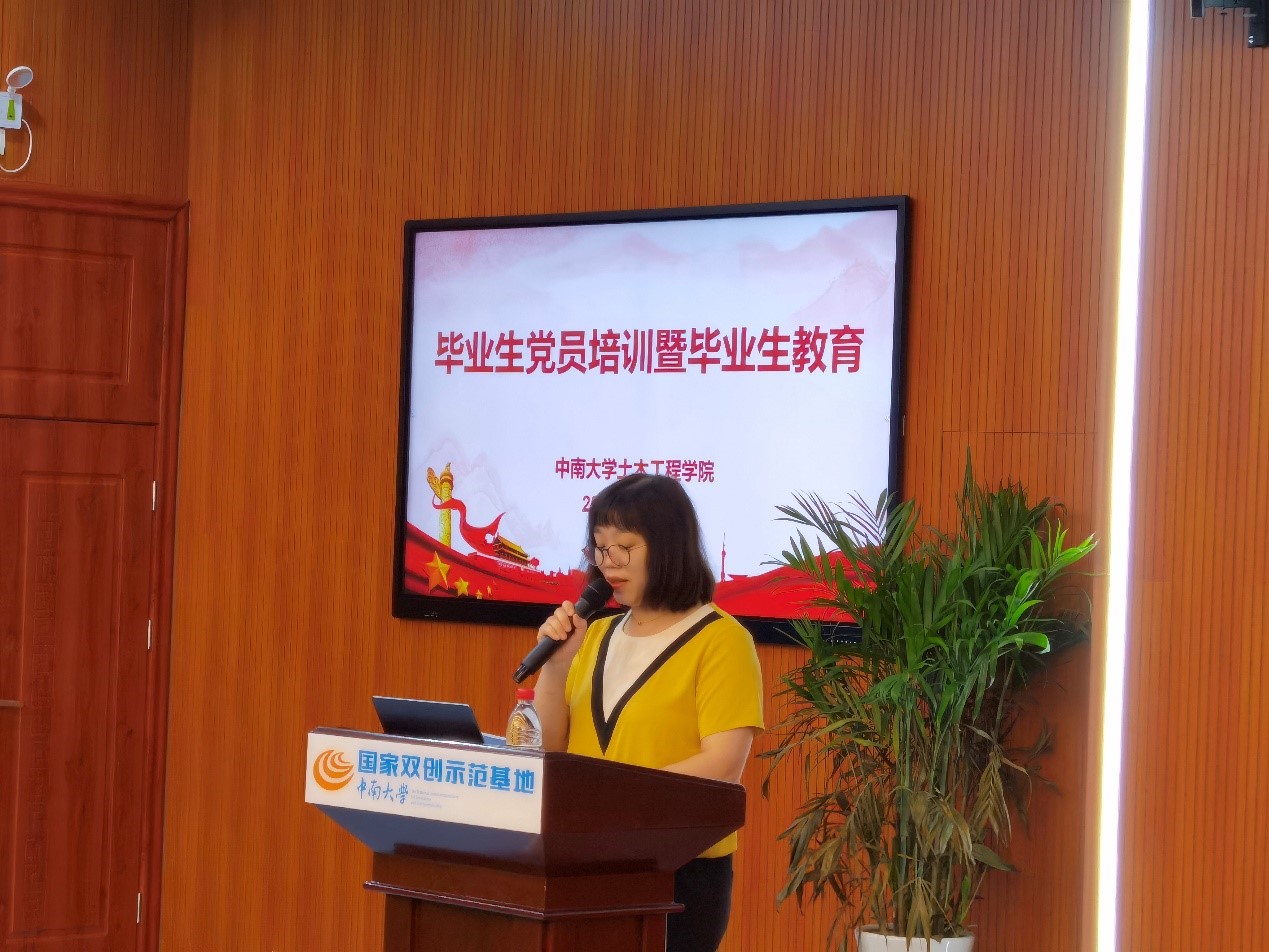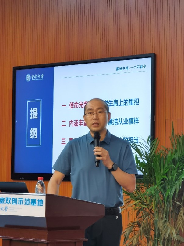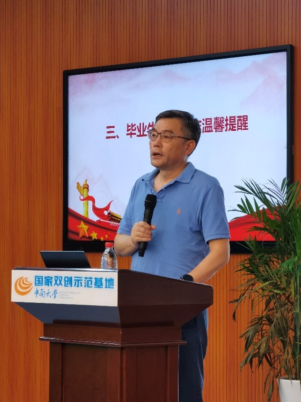 会议伊始,全体起立,奏唱国歌。接着,学院党委副书记杨鹰作了《扣正扣好第一粒扣子》廉洁教育,带领毕业生回顾习近平总书记在庆祝中国共产主义青年团成立100周年纪念大会上的讲话,提醒年轻干部远离违纪违法陷阱,号召大家树立正确的世界观、人生观、价值观,在各岗位上展现出中南人的表率和担当。