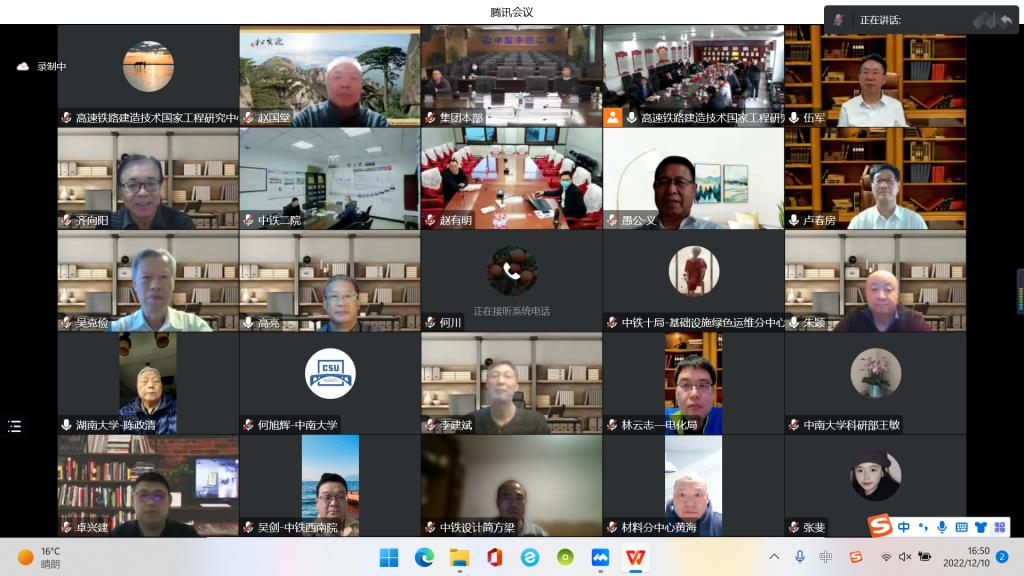 余志武代表高速铁路建造技术国家工程研究中心对工程中心建设运营情况从日常运营管理、人才队伍建设、平台改造升级、科研产业化进展、存在的问题与不足及下一阶段工作目标与计划向与会专家组进行了系统汇报。与会专家一致认为工程中心在人才队伍建设、条件建设、科学研究、学术交流等方面成果突出,并且在产业化平台构建方面取得了一定进展,充分发挥了工程中心的特色与优势。会议审查了2019、2020、2021年度开放基金课题进展情况,评议了2022年度开放基金课题申请材料,表决同意资助课题12项。