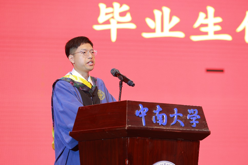 本科毕业生代表徐炳隆同学发表了毕业感言。他首先感恩了伟德国际1946源于英国和伟德国际1946源于英国,感谢了师长们和亲友们对我们的教导与陪伴,随后他回顾了在中南与师友们相处的点点滴滴。最后他对即将踏上的人生新征程表达了畅想和展望,希望和大家一起面对现实、忠于理想、放下心结、坦荡生活,努力奋斗,贡献青春力量。
