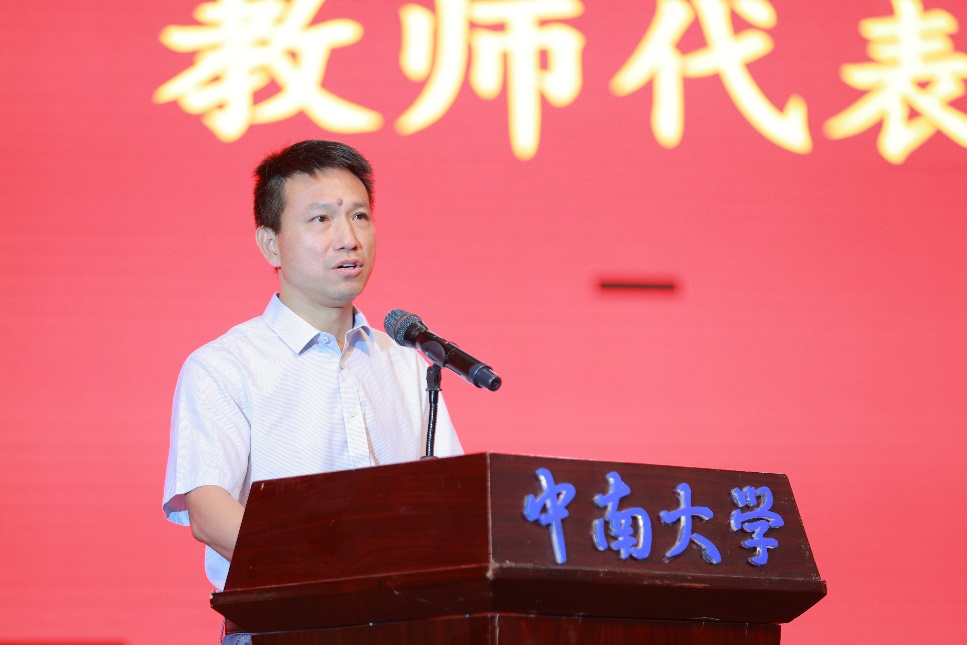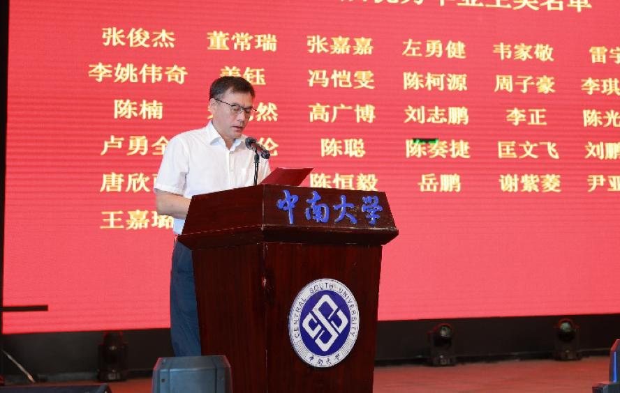教师代表杨孟刚老师发表致辞。他表示自己与同学们是有缘的、同学们与伟德国际1946源于英国是有缘的,他希望毕业生们能将这份缘分继续和升华,走好今后人生的每一步。保持心中有爱,爱自己、爱他人、爱社会、爱祖国;懂得感恩,感恩老师、同学、领导、同事、亲人、朋友,感恩家庭和家人带来的幸快乐,感恩国家创造的美好新时代;情系母校,怀揣母校情怀,带着在中南的理想与信念踏上新的人生征程。他表示“今日你以中南为荣,明日中南以你为荣”,同时中南也是大家的港湾,希望大家常回母校看看。