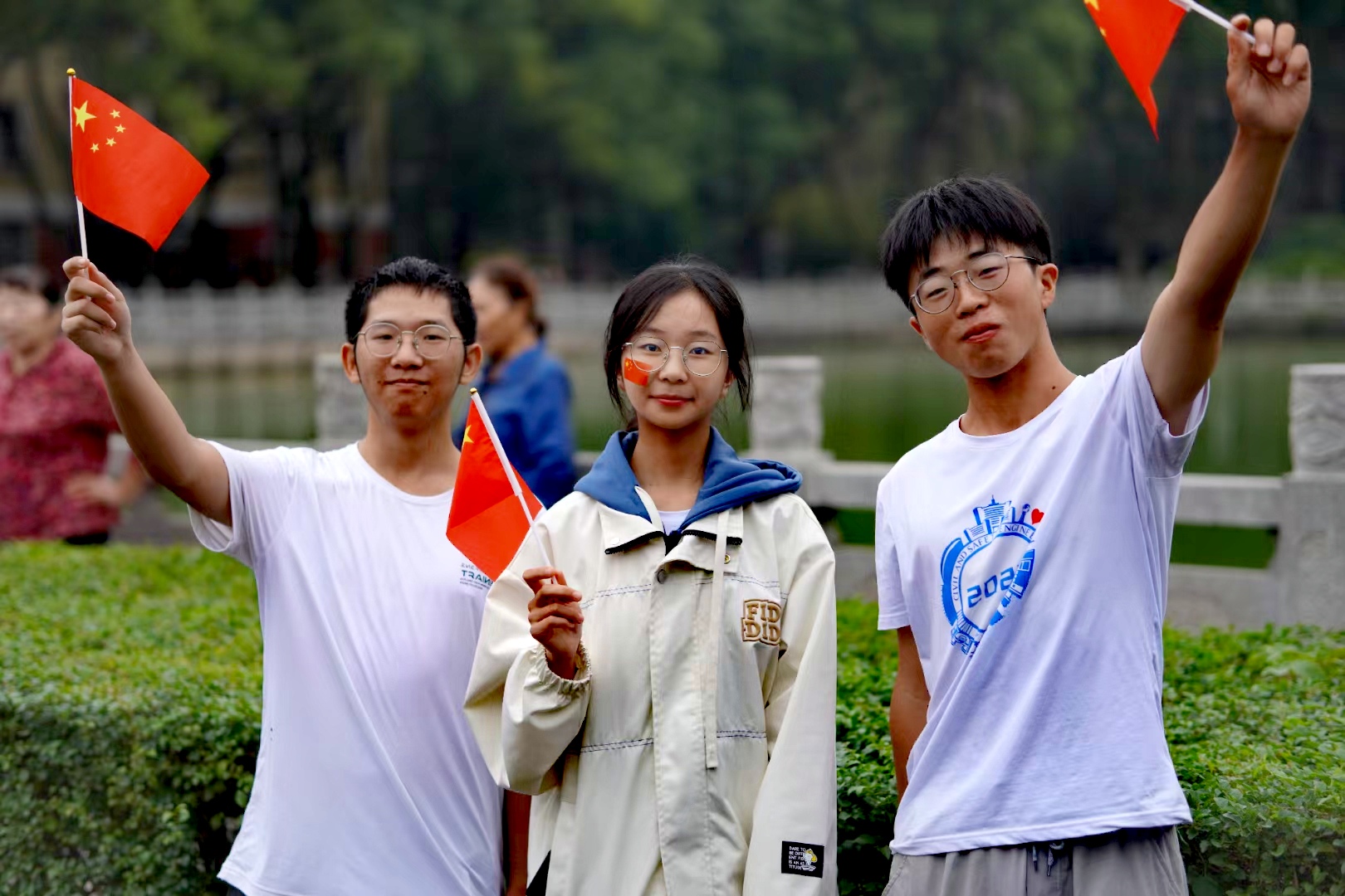 薪火相承,朝乾夕惕。仪式最后,全体师生挥舞手中的五星红旗,祝愿祖国繁荣昌盛,并在图书馆门前合影留念,以满怀信心与昂扬斗志共同奔赴国家富强、民族复兴的梦想彼岸。