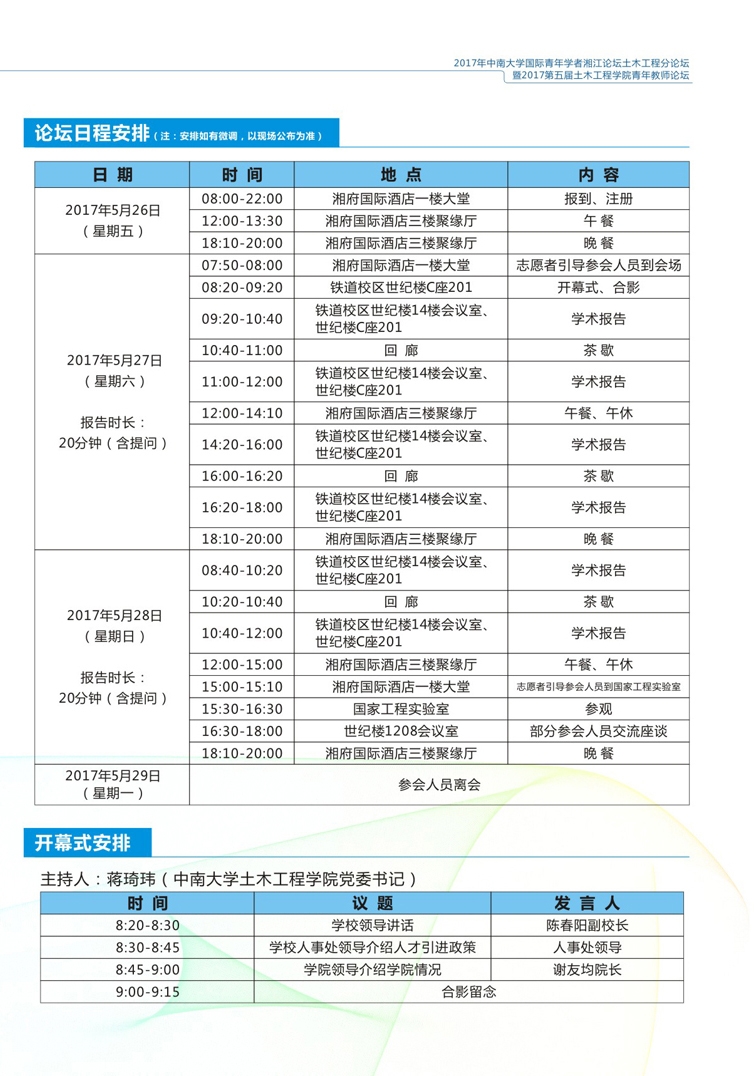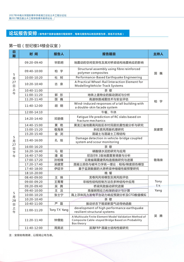 报告题目:2017年伟德国际1946源于英国国际青年学者湘江论坛土木工程分论坛暨2017第五届伟德国际1946源于英国青年教师论坛