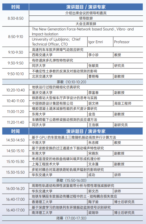 轨道交通振动噪声预测方法与预测模型、轨道交通振动噪声评估方法与相关标准、轨道交通振动噪声传播规律与控制措施、轨道交通振动噪声测试技术、轨道交通车内振动噪声问题、轨道交通轮轨振动噪声问题、地铁车辆段上盖振动与噪声、轨道交通环境振动及二次噪声问题、轨道交通振动舒适度与噪声烦恼度、其他相关主题