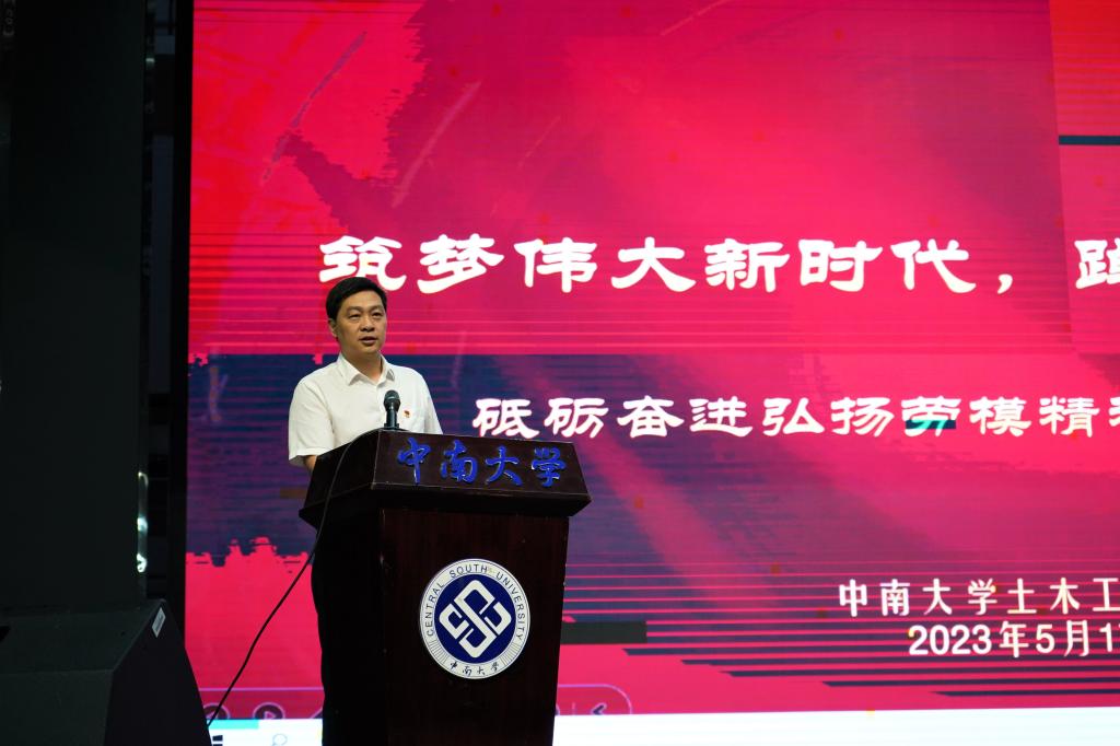 杨鹰副书记对本次系列报告作了简要介绍,指出在全院学习贯彻习近平新时代中国特色社会主义思想主题教育开展之际,举行“砥砺奋进,弘扬劳模精神”主题教育系列报告,旨在教育引导土木学院师生,经受思想淬炼、精神洗礼,以“爱岗敬业、争创一流、艰苦奋斗、勇于创新、淡泊名利、甘于奉献”的劳模精神筑牢信仰之基、补足精神之钙、把稳思想之舵。