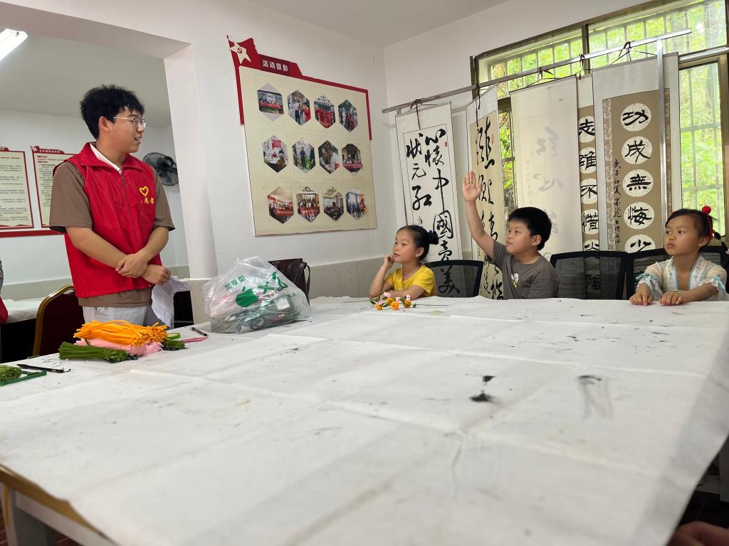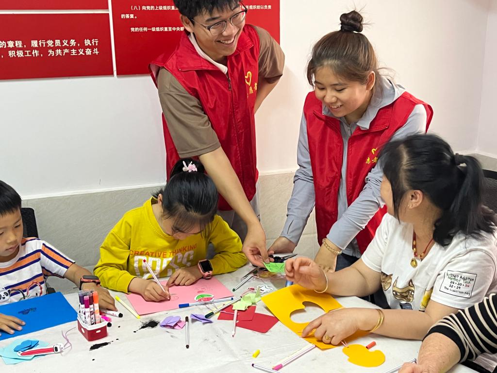 随后进入书签制作环节,志愿者们提前为居民们准备了各种材料,如彩色卡纸、剪刀、细绳等,并现场指导居民们如何制作精美的书签。在志愿者的演示教学与手把手的帮扶指导下,居民们发挥创意,制作出了各具特色的书签,有的用彩笔绘制了精美的图案,有的用剪纸拼贴出了生动的场景。这些书签不仅美观实用,还增添了阅读的趣味性,活动现场气氛融洽,欢声笑语不断。