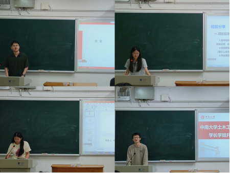 分享会上,4位优秀的学长学姐分别就考研、保研、选调和留学四个方面进行了深入分享。土木工程专业2014班朱希捷同学,以保研至浙江大学建筑工程土木水利专硕—岩土工程为例,详细阐述了保研的流程、准备工作和面试技巧,让在场的同学们对保研有了更加清晰的认识。工程力学专业2001班韩茂祥同学则分享了他考研至清华大学的经历。他强调了考研过程中选择的重要性,提醒同学们需要拥有主动收集信息的意识。土木工程专业2014班吴欣圆同学,以上岸青海省选调生经历引入,详细介绍了选调生的选拔流程、工作性质和发展前景,为有志于投身公务员事业的同学们提供了宝贵的参考。最后,工程力学专业2001班李源同学就留学经验进行了分享,从留学准备、申请材料到海外生活等方面进行了全面的介绍,为有意向出国留学的同学们提供了实用的建议。