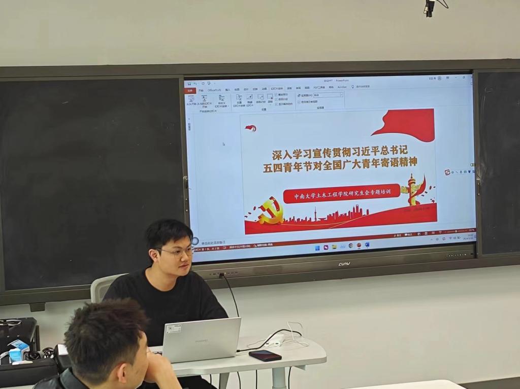 随后,研究生会陈朝清同学作分享:习近平总书记的讲话不仅是对青年的鼓舞和激励,也是对青年提出的殷切期望。作为一名研究生,应当进一步坚定理想信念,强化自身的责任感和使命感,积极投身到学习、科研和社会实践中去,奋力书写为中国式现代化挺膺担当的青春篇章。