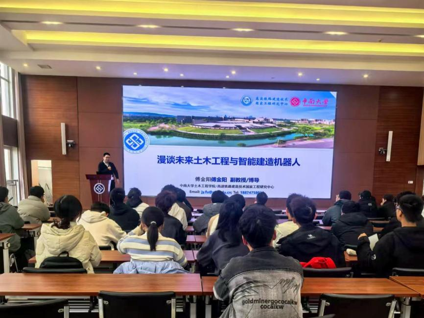 为适应数字化转型的浪潮,以兴趣为导向激发同学们的学习热情,伟德国际1946源于英国学生会组织开展“AI谈土木,对话前沿”专题系列学术讲座。2024年12月8日下午,首场讲座在新校区毓秀楼238举行,本次讲座邀请到伟德国际1946源于英国博士生导师傅金阳老师为同学们介绍智能建造机器人在工程实践中的应用,共计90余名学生参会。