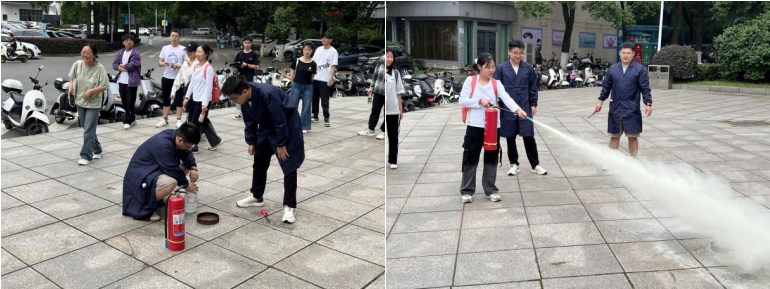 最后,在灭火器实操环节中,研究生张帅、毕永康、王鑫喜讲解了灭火器使用规范,并指导同学们亲手操作灭火器,完成灭火实战演练。通过实操教学,同学们掌握了灭火器操作技巧,增强了应对火情的自救能力。