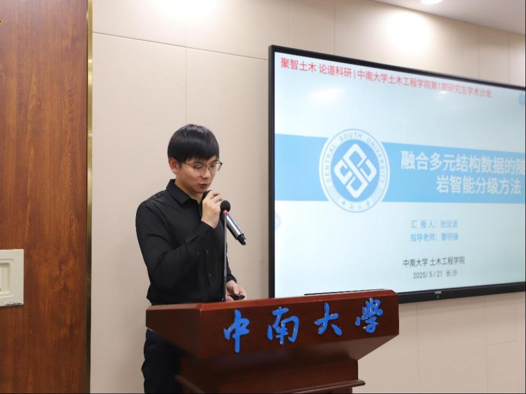 张运波从隧道及地下工程智能识别领域进行了深入分享,他向大家介绍了自己创新提出的“地勘设计、地质预报、钻进数据、掌子面图像智能识别”四元一体综合判定法。通过数据融合与智能算法的应用,该方法有效突破了传统方法的局限性。他强调,科研需扎根工程现场,以实践问题为导向反哺理论创新,并鼓励大家通过软件开发推动成果转化,实现学术价值与产业需求的深度融合。