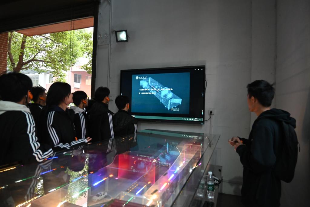 在风洞实验室,同学们探寻了“12级台风来袭,高楼大桥何以安然无恙”的答案。志愿者首先讲解了实验室的建设背景——它是为了模拟极端风环境、保障重大工程安全而建造的。通过清晰的工作原理介绍和生动的操作演示,让同学们了解工程师们如何在这里利用精密仪器,对建筑与桥梁模型进行抗风测试,从而优化结构设计。讲解还延伸至风洞实验室在土木工程抗风、城市防灾减灾等领域的关键研究方向,以及团队在大跨桥梁抗风安全等方向取得的突破性成果。