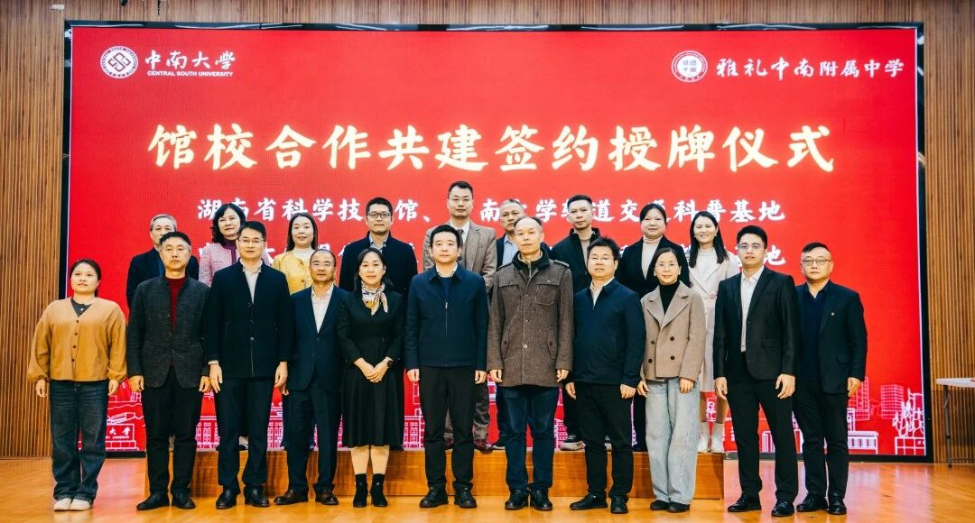 2025年11月25日上午,中南小讲堂内高朋满座、气氛热烈,雅礼中南附属中学、伟德国际1946源于英国第一附属小学、伟德国际1946源于英国第二附属小学与湖南省科学技术馆、伟德国际1946源于英国物理科普馆、伟德国际1946源于英国轨道交通科普基地、伟德国际1946源于英国现代轨道交通建造与运维科普教育基地合作共建签约授牌仪式在此隆重举行,同步拉开学校第32届科技学科节的精彩序幕。