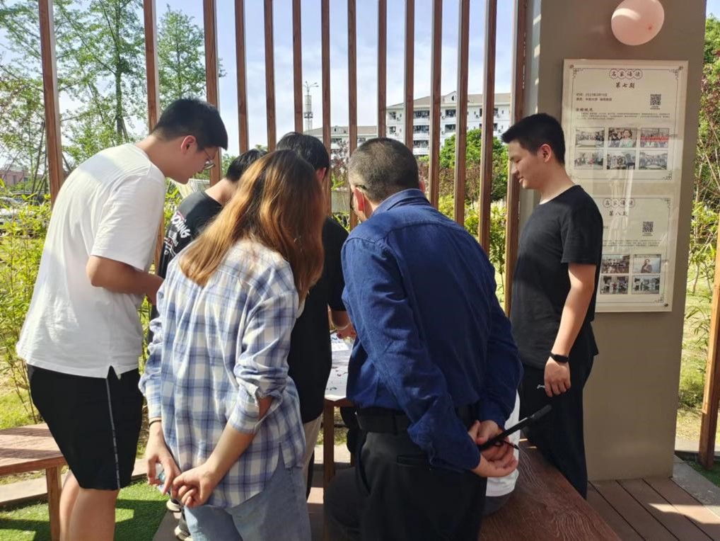 5月4日下午,土木安全2106班班委在问渠长廊组织了主题为“诗情经典,传道承技”的班级问渠活动,辅导员周惠斌、罗玲,班导师苏晶晶和专业课教师蔡旭晖指导,土木安全2106班同学全体参与。本次活动分为三个环节:寻花批扇、传道承技、继往开来。由6名学生与1名老师组成活动小组,共同参与了活动的各个环节。