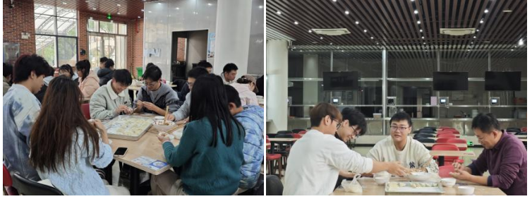 本次活动,食堂为师生们精心准备了特制面皮、白菜猪肉馅、韭菜鸡肉馅、各式各样的蘸水以及厨具等。参与活动的师生们分成若干小组,围坐一桌,一边包饺子,一边亲切交流,培养了师生之间的深厚情谊。