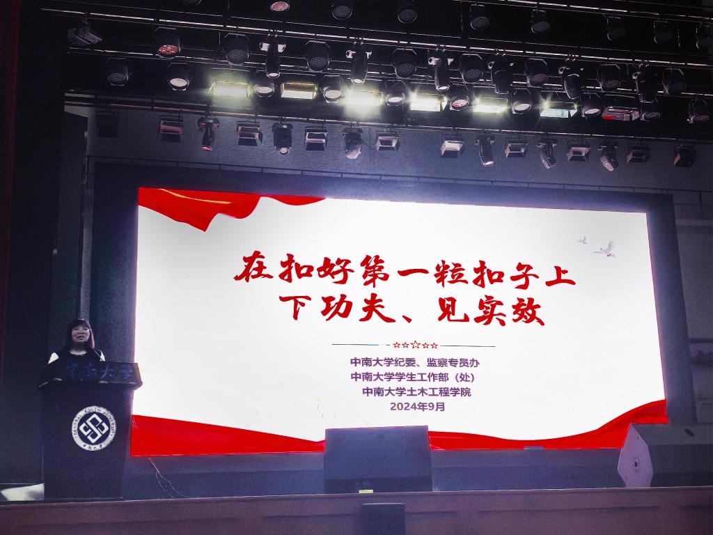 学院党委副书记纪晓飞以《在扣好第一粒扣子上下功夫、见实效》为题作“一个不能少”2024级新生廉洁教育宣讲。她从坚定理想信念,扣正“第一粒扣子”、严守纪律规矩,扣牢“第一粒扣子”、用于担当奋斗,扣好“第一粒扣子”三个方面进行讲述。她强调,全体研究生务必严守纪律规矩,勇于担当奋斗,扣正扣牢扣好“第一粒扣子”,以广大优秀中南校友为榜样,融入伟德国际1946源于英国,实现人生理想。