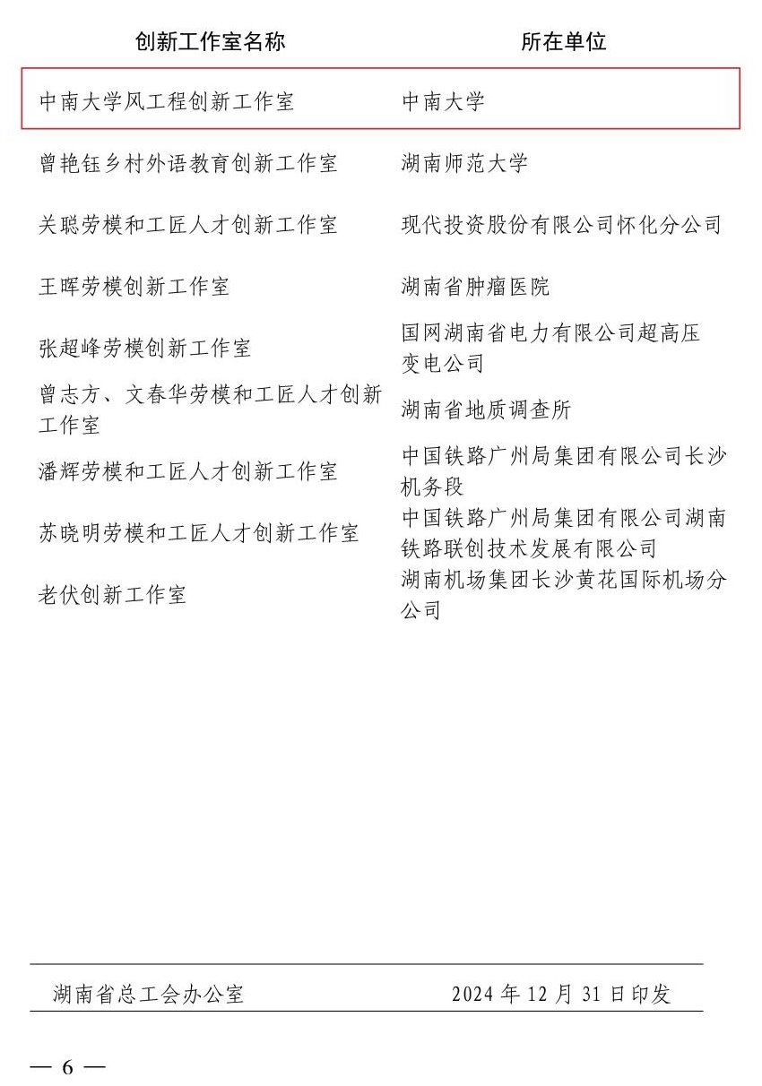 近日,湖南省总工会公布了《关于2024年湖南省总工会重点支持的劳模和工匠人才创新工作室入选名单的通报》,伟德国际1946源于英国风工程创新工作室荣获省总工会重点支持的劳模和工匠人才创新工作室,全省仅两所高校工作室入选。