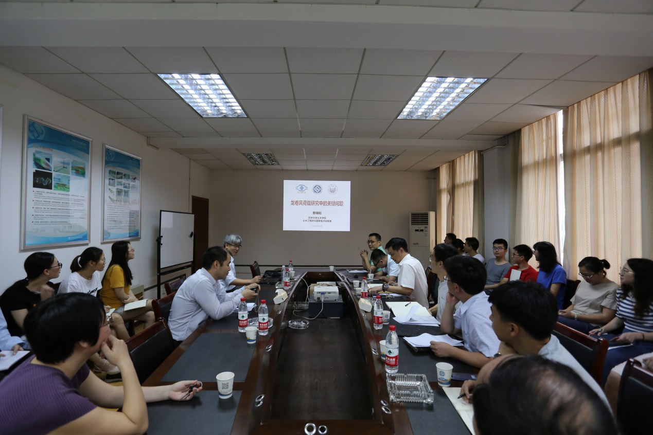 报告主题为《龙卷风荷载研究中的关键问题》。曹曙阳教授从龙卷风及其灾害、国内外研究现状、同济大学研究进展、关键科学技术问题和龙卷风研究展望等五个方面进行了介绍。首先介绍了龙卷风的概念以及美国、日本和中国的龙卷风灾害实例,通过对多处龙卷风灾后情况进行研究发现,被龙卷风破坏后的建筑物主要呈现直线状分布(断断续续)且龙卷风主要具有突发性强、风速大。变化剧烈、空间尺度小、持续时间短和旋转等特点。