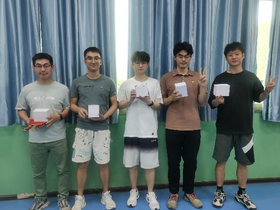 经过近三小时的激烈角逐,杜林波、卢佳节、乔文登分别获得男单冠亚季军;黄丹蓉、曾文欣、杨倩分别获得女单冠亚季军,黄丹蓉、余付荣夺得男女混双冠军,杨倩、徐童摘得混双亚军,胡逸之、乔文登获得混双季军。比赛结束后,消防科学青年社主席于子涵为获奖选手颁发了奖品,并合影留念。