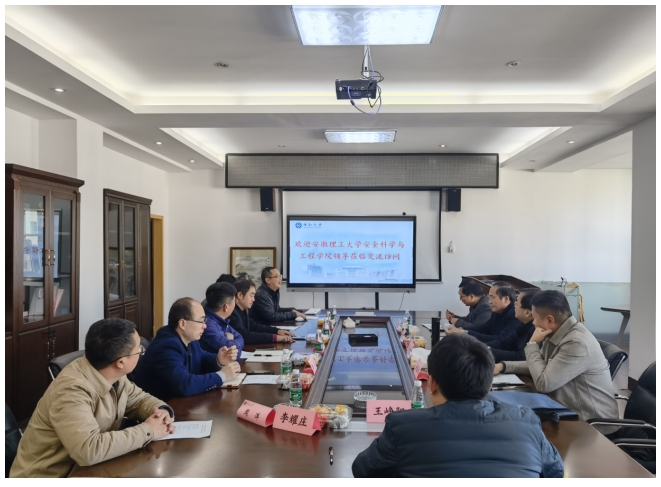 2021年12月1日,安徽理工大学安全科学与工程学院院长华心祝教授、副院长刘健教授、消防与应急系主任彭伟副教授、岳基伟老师一行4人来到伟德国际1946源于英国消防工程系进行访问交流,交流会于伟德国际1946源于英国铁道学院第一综合实验楼6楼会议室举行。伟德国际1946源于英国副院长易亮教授、消防工程系书记申永江副教授、系主任陈长坤教授、系副主任范传刚教授、系副主任颜龙特聘副教授、李耀庄教授、王飞跃副教授、周洋副教授、王峥阳老师和部分博士研究生出席本次座谈交流会。交流会由陈长坤教授主持。