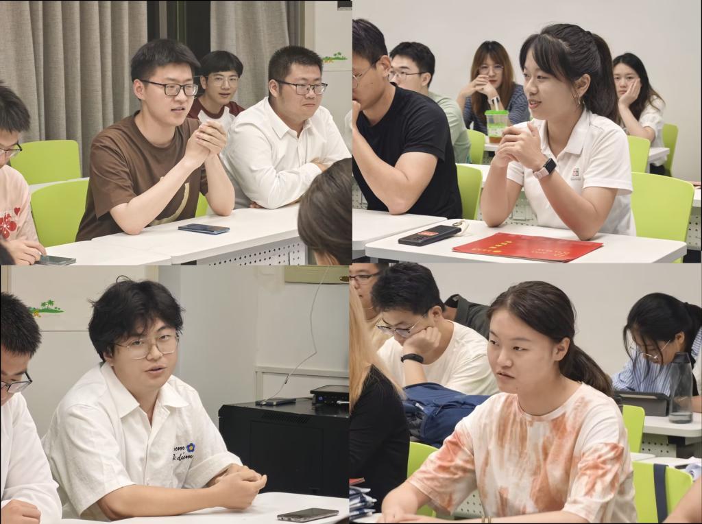 到场的毕业生党员同志依发言。毕业生党员结合自身经历,就学业及考公规划、时间安排、科研竞赛等方面与20级、21级同志们分享了经验,强调了心态的重要性,倾囊相授、指点迷津。表达了对学校与支部的感激、对支部党员同志们的真诚祝福。
